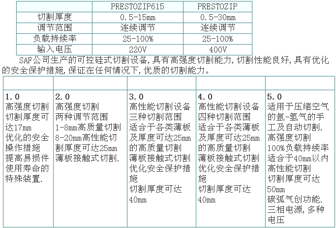 SAF公司生產的便攜式等離子切割設備特別適用于薄板金屬的切割,使用迅捷,效果理想,其長型割嘴加上具有高頻起弧的性能,可保證在任何情況下獲得高精度及高質量的切割效果。