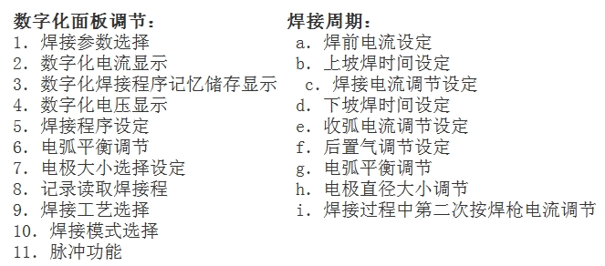 = 多種焊接工藝選擇:交直流TIG焊/TIG點焊/脈沖TIG焊/手工電弧焊