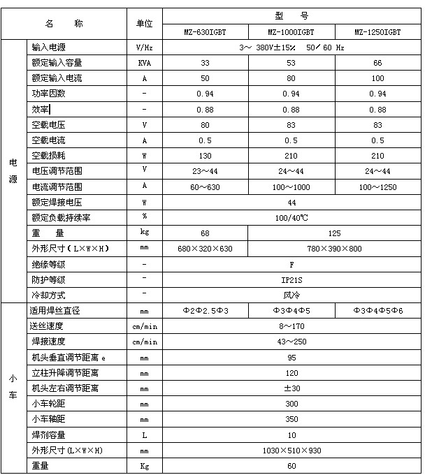 MZ-630、1000、1250IGBT逆變式自動(dòng)埋弧焊機(jī)