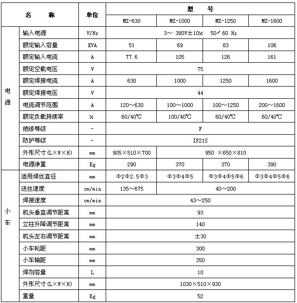 MZ-630、1000、1250、1600可控硅整流式自動埋弧焊機