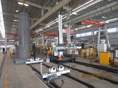 該設備主要用于筒體的環縫、直縫、環形角焊縫的焊接,通過觸摸屏用戶界面編程,可以實現其他類似工件的焊接。該設備主要由操作機、移動臺車、變位機、滾輪架、夾具、焊接系統、控制系統等組成。