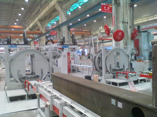 1.前支腿梁變位傳輸焊接生產線是一條專用于泵車前支腿梁焊縫、小件配焊等的專用成套設備。采用雙驅環形滾輪架方式+從動同步端移動方式+分段動力輸送線布局方式,布局合理,方便快捷、經濟適用。